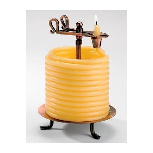 Candle by the Hour buy a 60 and get a free upgrade to the 80 through December 31, 2006. With hours of dreamy candlelight in your Candle by the Hour, you can set the amount of time it burns, hour by glowing hour. Simply feed the pliable beeswax coil through the candle clip in increments of 3 Inches or less. Three Inches of Candle will burn for approximately 1 hour. Set your nights alight with the Candle by the Hour. Candle by the hour is based on candle design of the 1600's but now has a patented clip which extinguishes the candle automatically when it burns down inside the clip. Made of 100% beeswax because you breathe what you burn. Unlike paraffin candles that are made from petroleum sludge, beeswax candles actually help clean the air. Beeswax produces negative ions when burned which helps remove the pollutions and allergens from positive ions, allowing them to drop harmlessly to the ground.